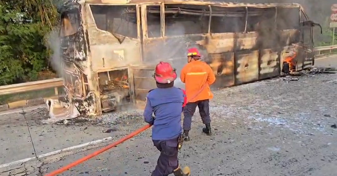 OnlineBekasi.com – Sebuah insiden kebakaran bus Damri terjadi di KM 46 tol Jakarta-Cikampek, Jumat (3/10/2025).