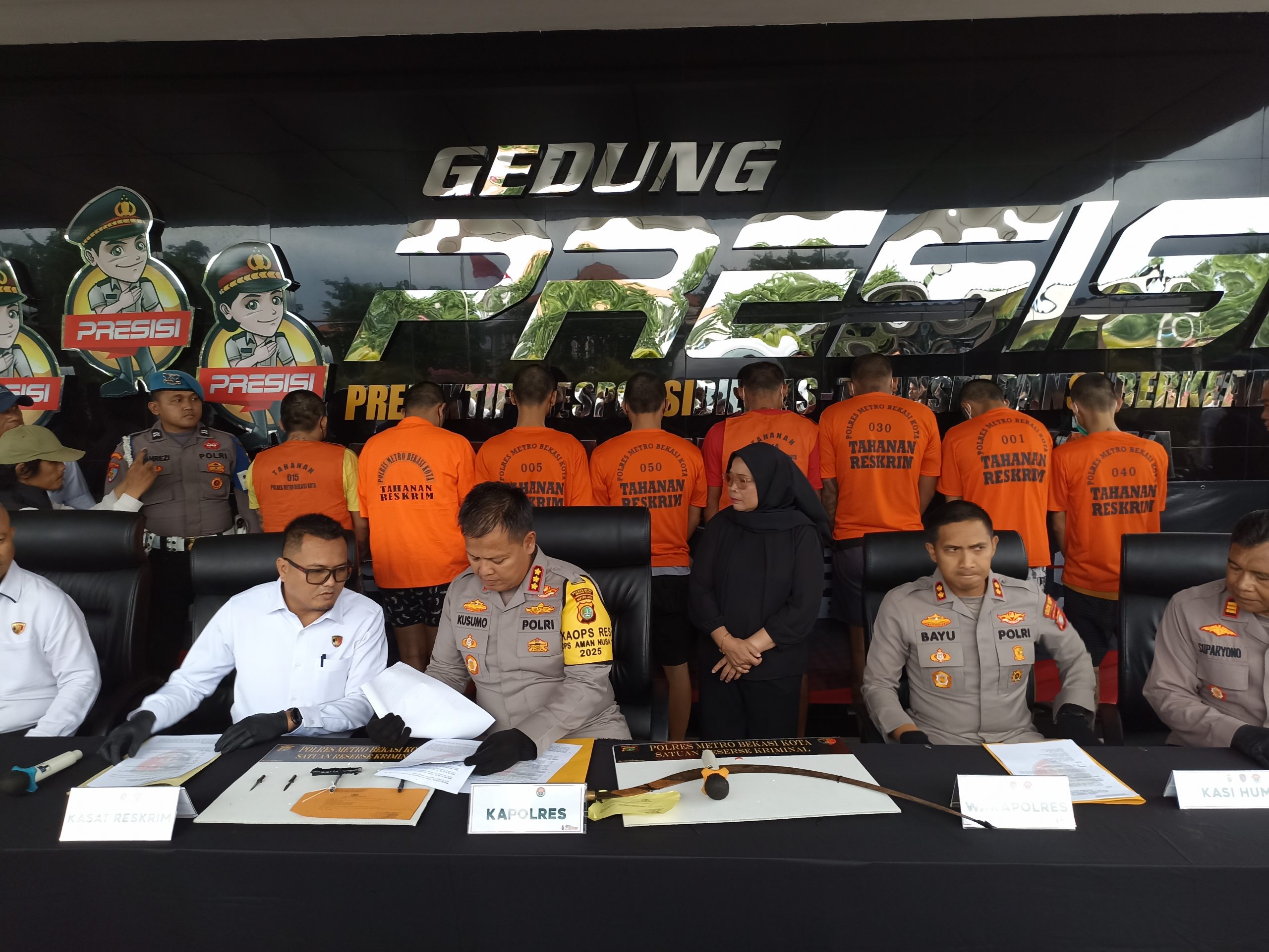 Kapolres Metro Bekasi Kota, Kombes Kusumo Wahyu Bintoro, mengungkapkan bahwa dari delapan tersangka yang diamankan, empat di antaranya merupakan saudara kandung.